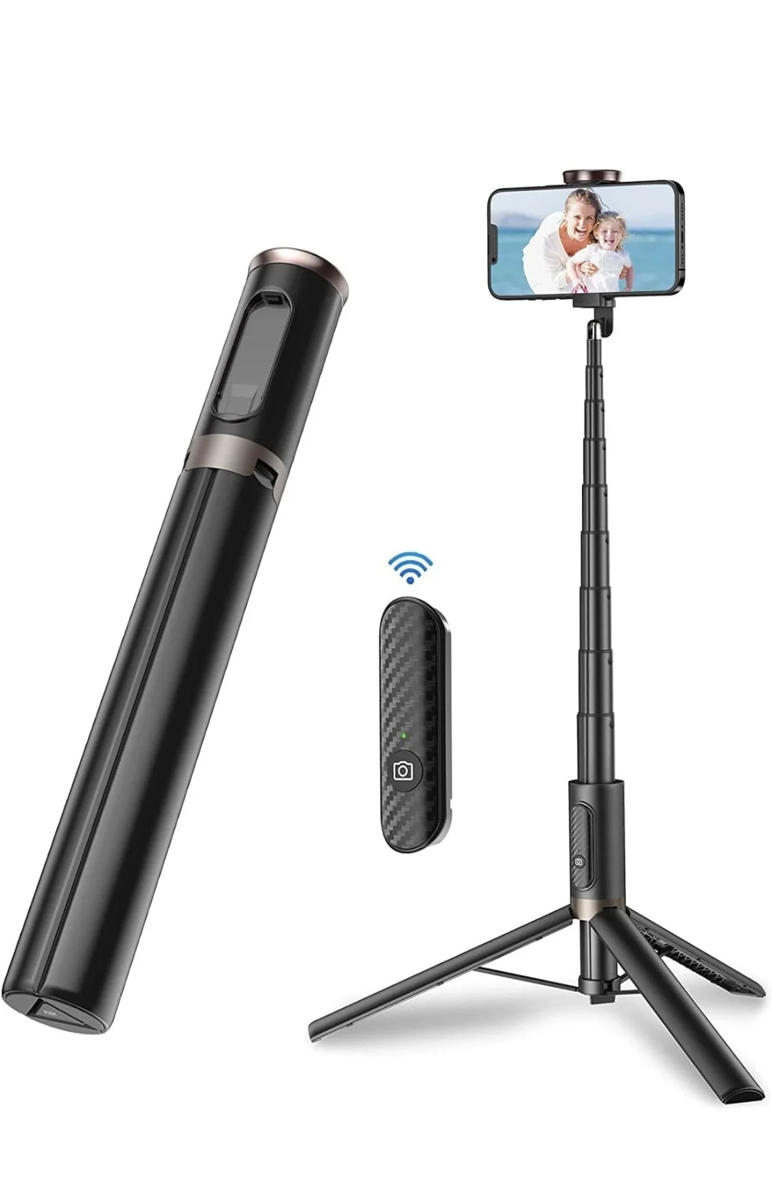 TONEOF 60" Cell Phone Selfie Stick Tripod,Smartphone Tripod Stand All-in-1 with Integrated Wireless Remote,Portable,Lightweight,Extendable Phone Tripod for 4''-7'' iPhone and Android(Black)